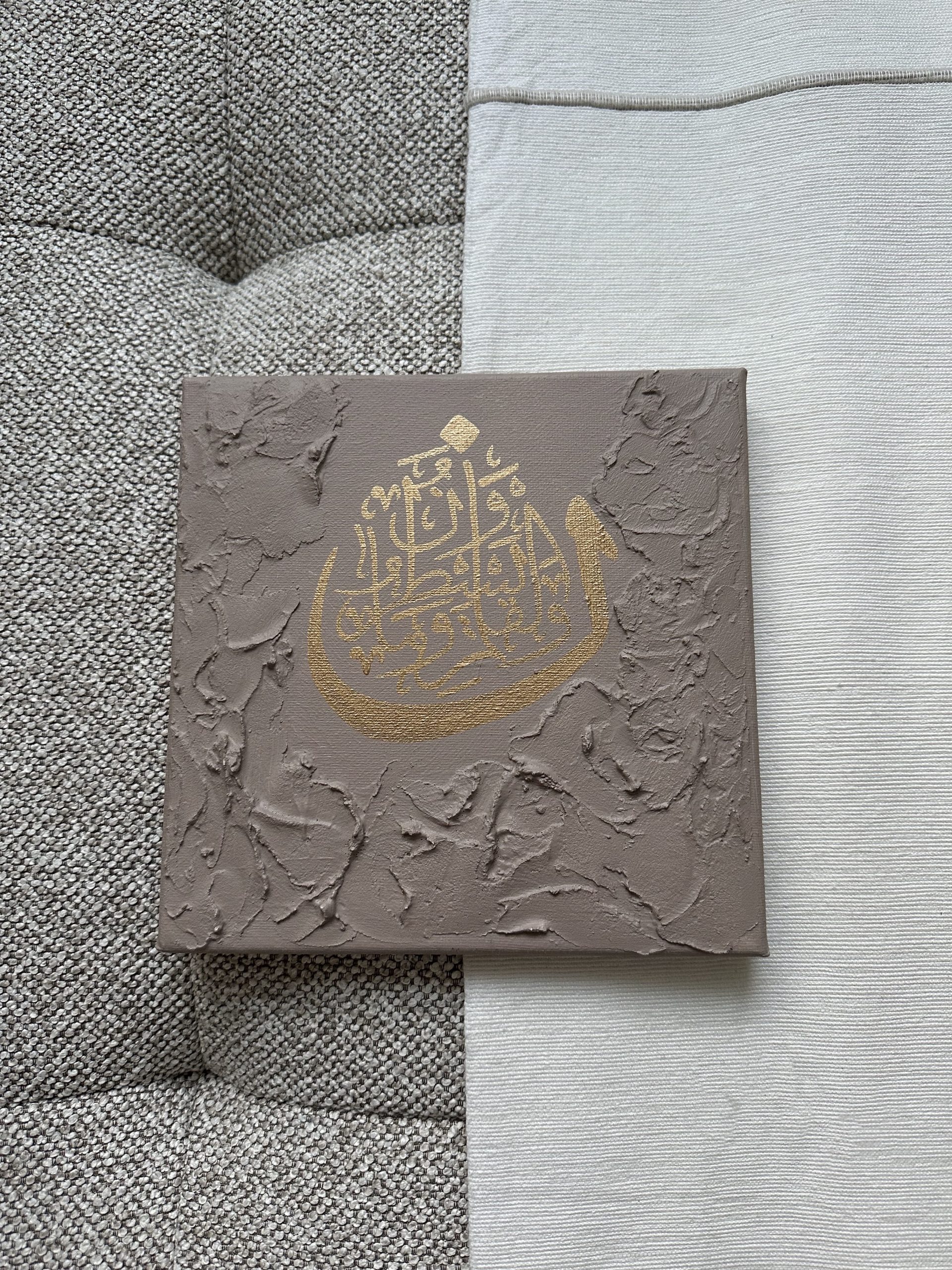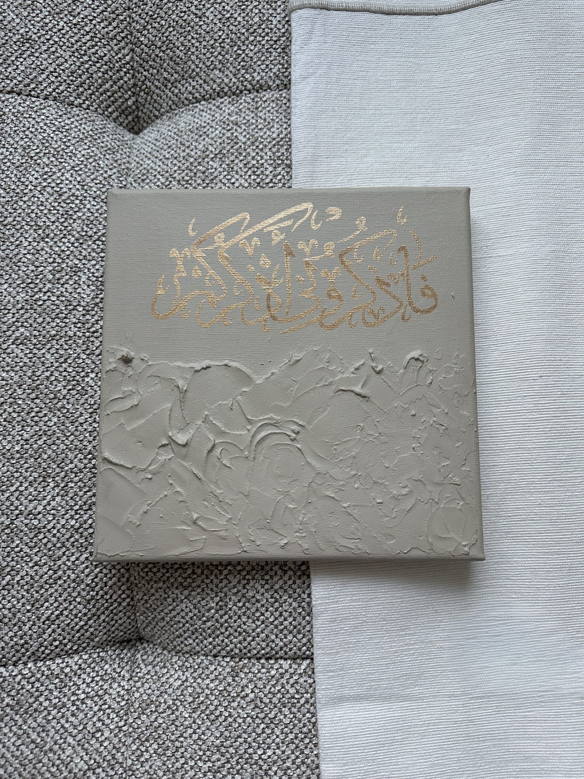 calligraphie dorée: “Nun. Par la plume et ce qu’ils écrivent !