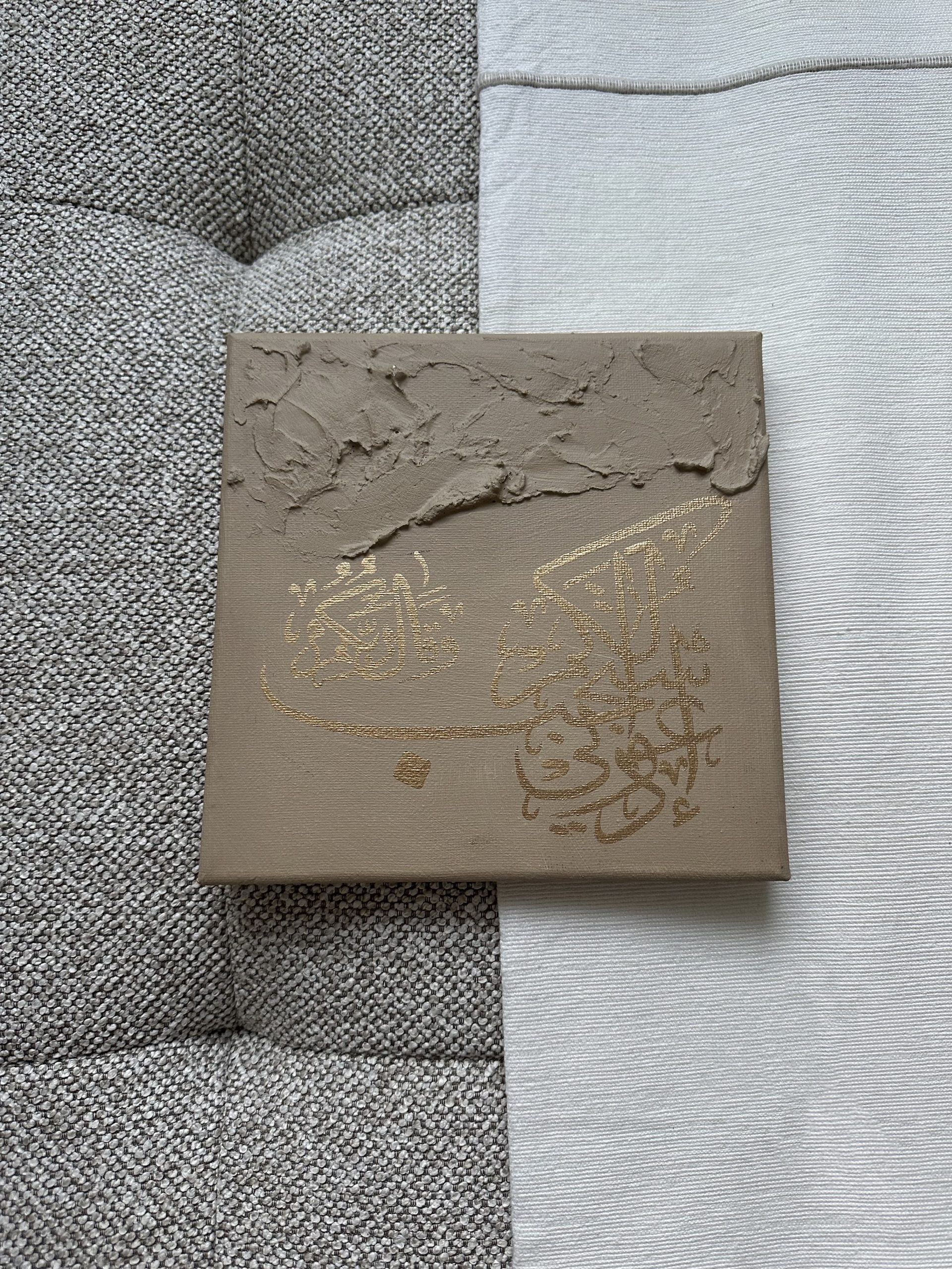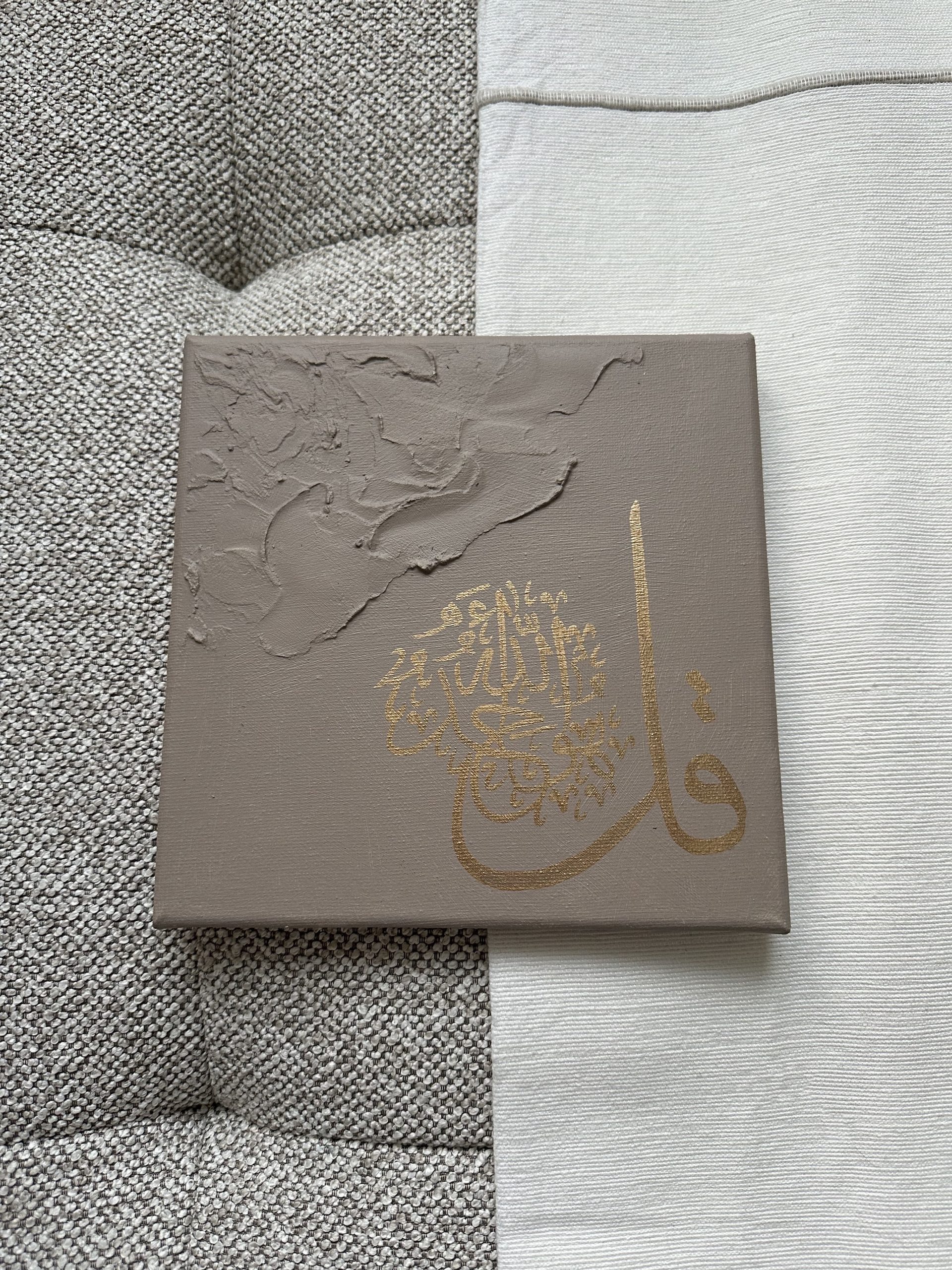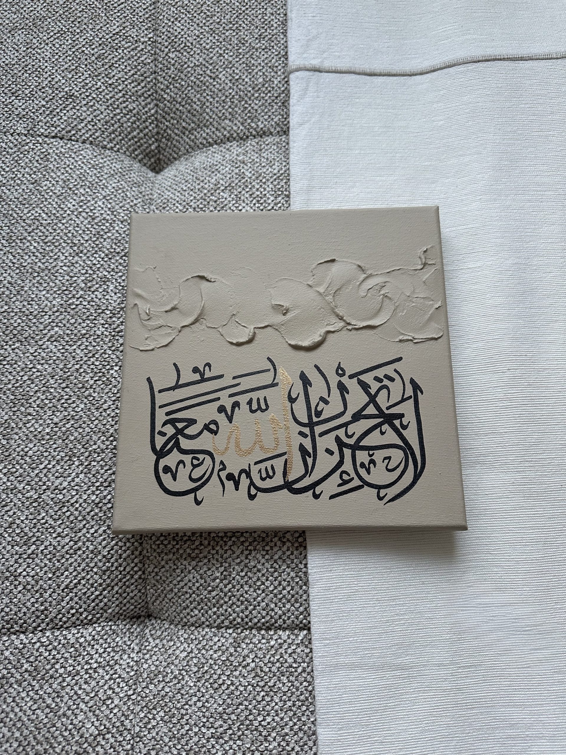 calligraphie dorée: “Ne vous affligez pas, car Allah est avec nous.“